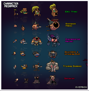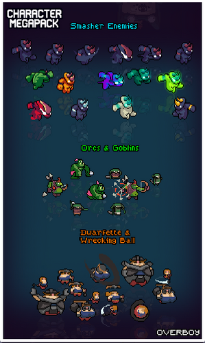 This pack contains every single characters and animations from a (cancelled) roguelike project I’ve been developing for several years. Now released as a huge pack of content for other devs to enjoy